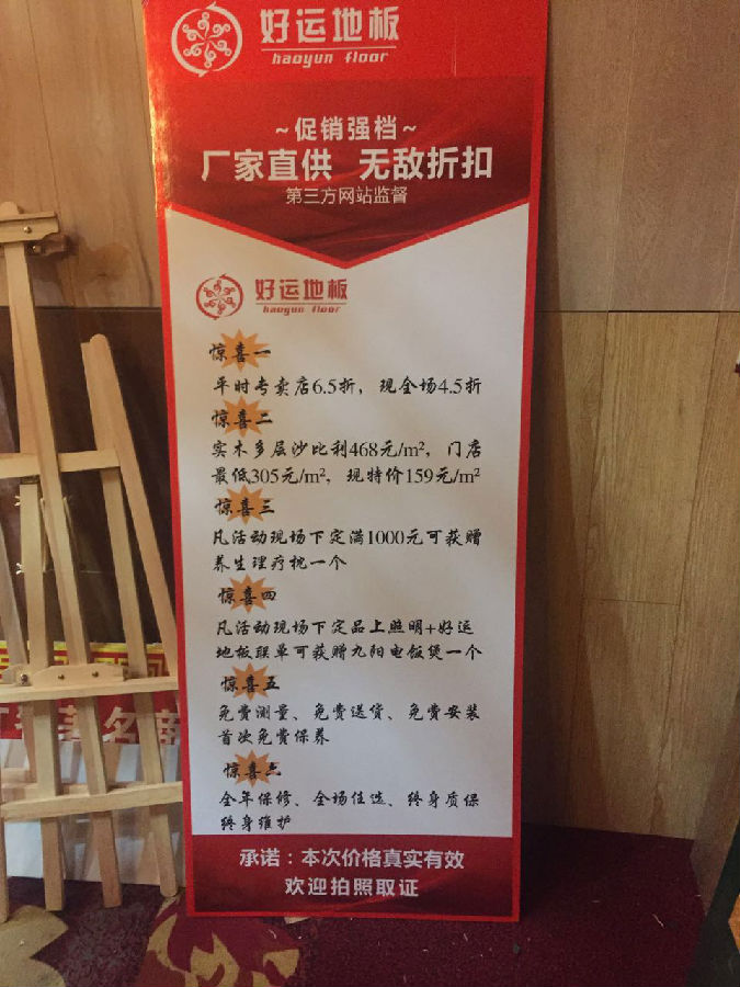 为答谢广大消费者对芭乐视频APP黄下载芭乐视频色板的关心与支持,芭乐视频APP黄下载公司为参加本次团购活动的消费者精心准备了多达数百款的优质地板产品,实木地板、实木多层地板、强化地板、拼花地板等花色齐全,活动产品均已工厂直销价出售,畅享无敌折扣。活动当天,芭乐视频APP黄下载地板全场4.5折,超低的折扣简直叫人不敢相信自己的眼睛。另外,特价款产品更是打破底价,原价468元的实木多层沙比利地板,活动期间全部159元每平米。不仅如此,更有超多豪礼相送,养生理疗枕,九阳电饭煲等一系列好礼全部任性大放送。降价不降服务,芭乐视频APP黄下载地板现场承诺,所有消费者均享受免费测量、免费送货、免费安装、首次免费保养、全年保修、终身质保等一系列金牌服务。活动当天,更有豪车队伍助阵芭乐视频APP黄下载地板此次活动的宣传,在临近一年尾声的时刻,芭乐视频APP黄下载地板实实足足的疯狂了一次。
